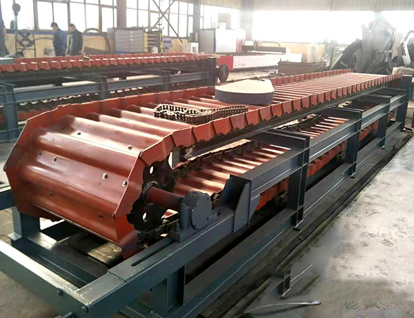 鱗板式礦用輸送機(jī)具有結(jié)構(gòu)簡單、運(yùn)行可靠、使用壽命長,安裝維修簡單等特點(diǎn),對物料粒度、塊狀、工作環(huán)境無特殊要求,運(yùn)送單個(gè)物料(件)的重量可達(dá)70-120kg,輸送機(jī)長度可達(dá)40-80米且允許25°傾角輸送。鱗板輸送機(jī)可用于沿水平或傾斜方向由儲倉向破碎機(jī)、輸送機(jī)或其它工作機(jī)械輸送各種塊狀或松散物料。有輕型和中型之分。