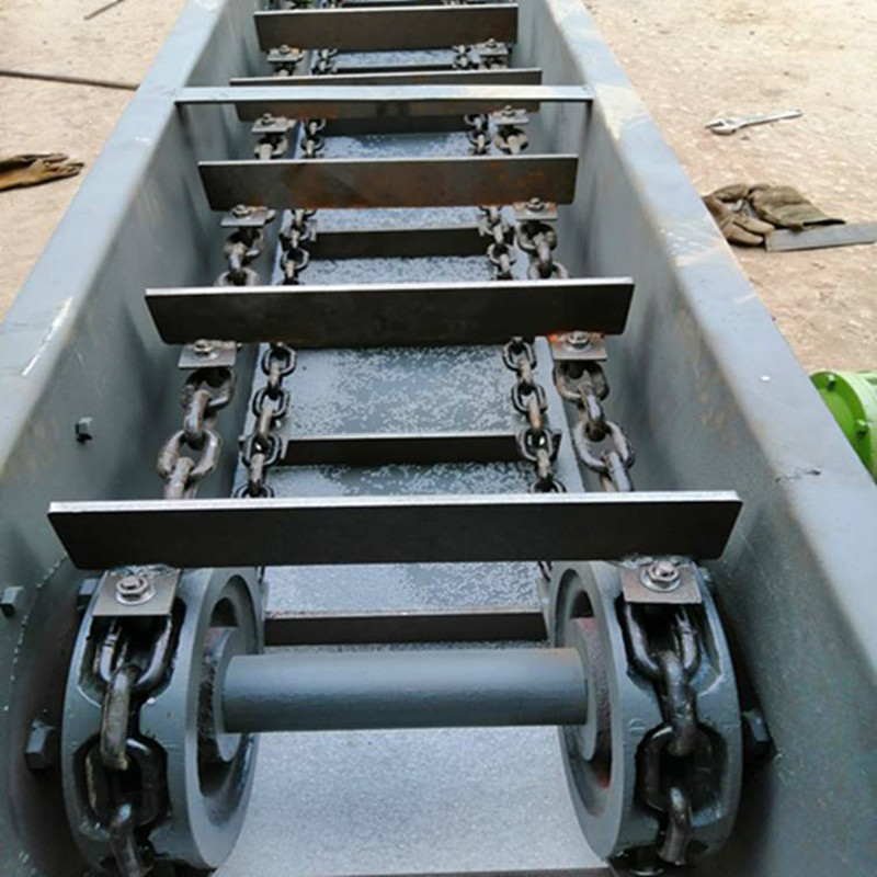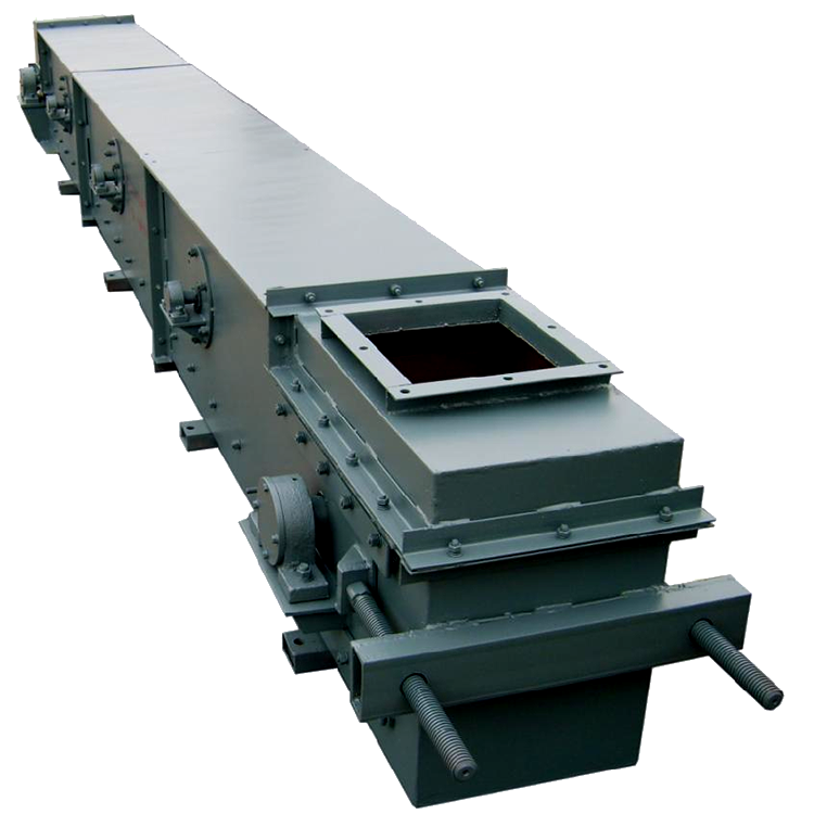 埋刮板輸送機整機結(jié)構(gòu)合理,可以多點加料,也可以多點卸料。刮板鏈條在電動機+減速機的傳動下均勻運行移動,運行平穩(wěn),噪音低,埋刮板輸送機是倍受冶金、礦山、火電廠歡迎的散狀物料輸送系統(tǒng)設(shè)備。埋刮板輸送機有MS、MC、MZ型埋刮板輸送機三大系列可供選用。是一種在封閉的矩形斷面或圓管型斷面的殼體內(nèi),借助于運動著的刮板鏈條連續(xù)輸送散狀物料的運輸設(shè)備。